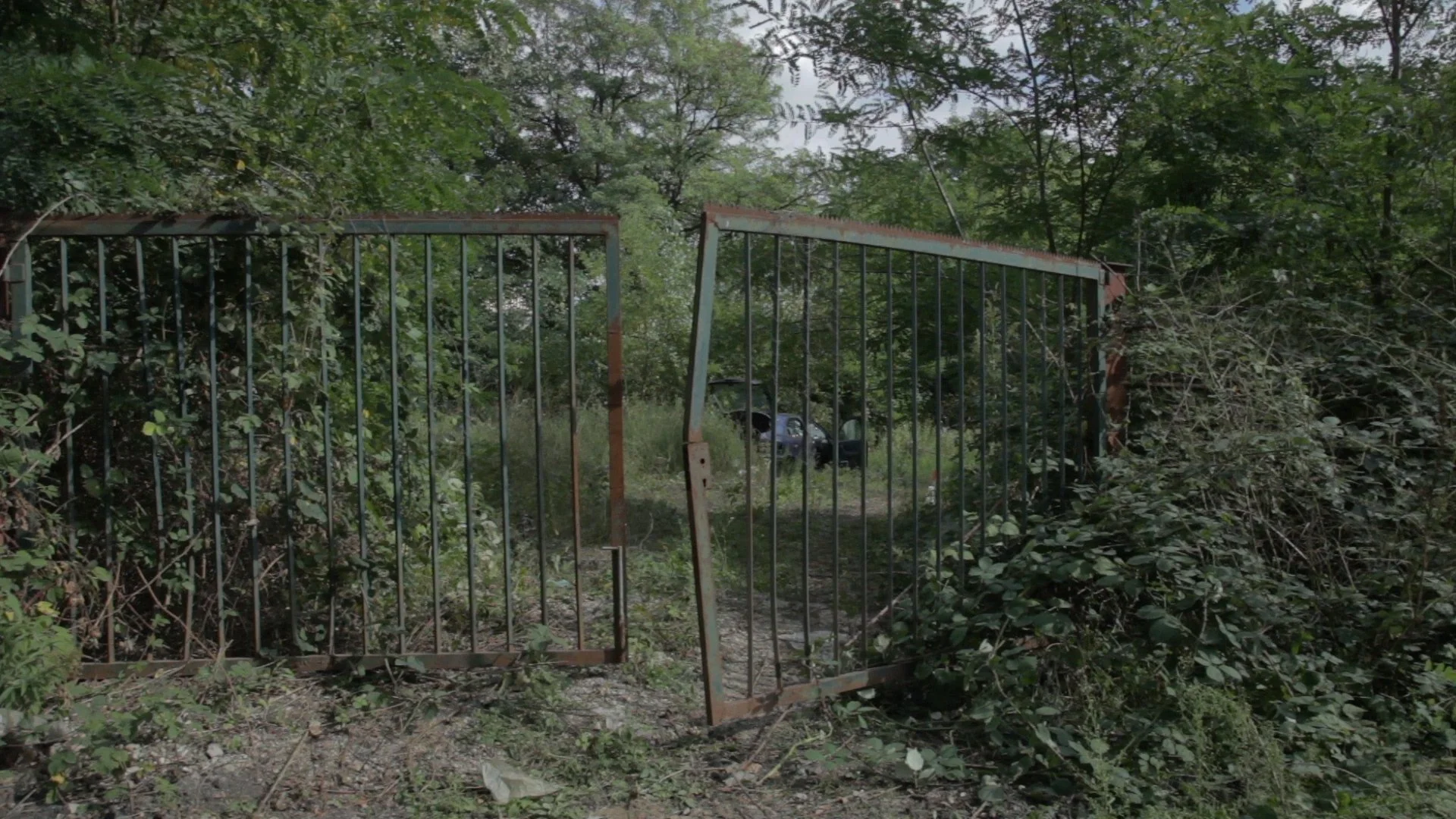 A black taxi takes the audience to the outskirts of the city. During the ride, a noise gradually overlays the music coming from the car radio. It is the anticipated sound of the destination of the journey under a motorway bridge. Here, the driver points the way and says goodbye with the brief statement that he will wait on the other side. The path leads through a rusty gate and knee-high grass to a broken car, from whose destroyed dashboard the same song as in the taxi can be heard as if coming from a distance.