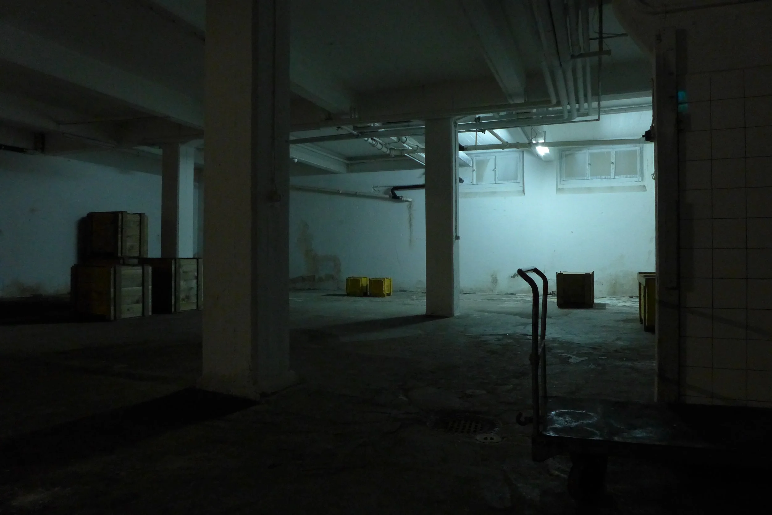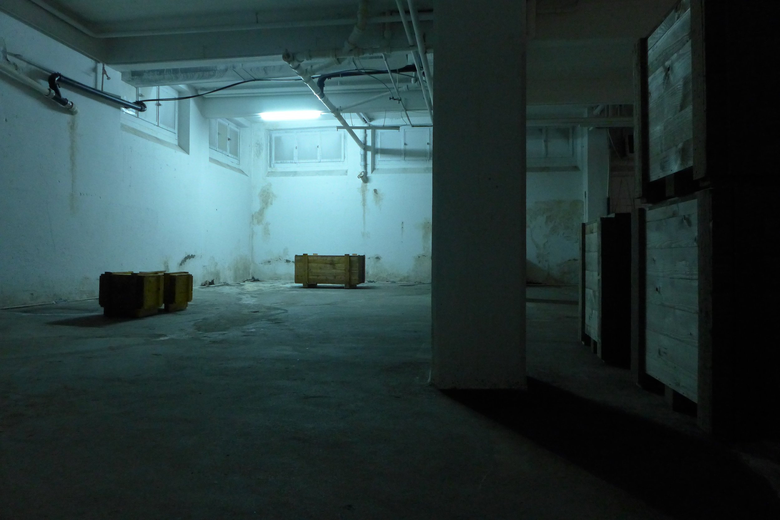 A scenographical sound installation in the basement of a warehouse in the industrial district of Zurich Binz.